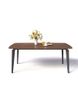 - Chất liệu: Bàn ăn chân sắt tạo hình kiểu thanh cài bút, sơn đen sần hoặc kem. Mặt bàn cốt gỗ plywood dày 18mm phủ melamin 2 mặt. Cạnh bàn vát chéo.