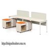 - Cụm bàn đi kèm với tủ phụ di động (chia làm 2 buồng: 1 buồng cánh mở + 1 buồng ngăn kéo trên, phía dưới không cánh ) + vách ngăn gỗ.